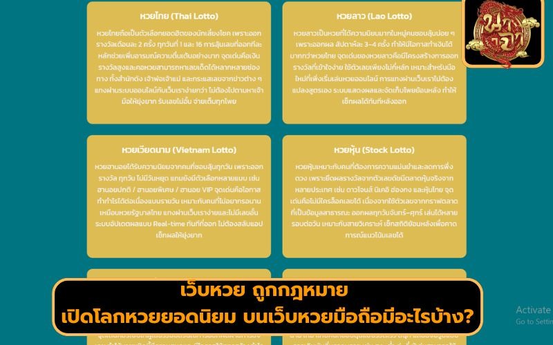 เว็บหวย ถูกกฎหมาย เปิดโลกหวยยอดนิยม บนเว็บหวยมือถือมีอะไรบ้าง?